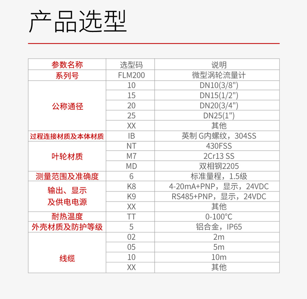 微型涡轮流量计结构简单、精确度高、安装维修使用方便,可对管道中的液体流量及温度情况进行实时监控,支持流量和温度(4~20)mA 信号或 485 通信、报警开关输出,并采用 OLED 实时显示流体流量及温度,实现管道当中流量温度一体式的监控功能。本产品广泛应用于石油化工、电力、治金、钢厂、造纸、食品加工、水处理、电池厂等行业。