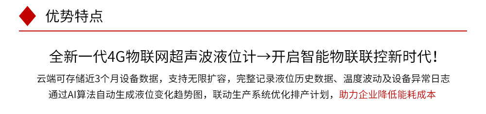 DB旗舰官方WSU-200 4G物联超声波液位计具有高可靠性、高性价比、易安装维护的液位/物位测量仪器,可广泛用于各种液体和固体物料高度的测量。本产品可选配 NB-IoT 无线通讯功能,用户可在仪表云平台进行数据查看和远程监控。常见的应用工况,如市政、化工、储运等工业环境中的河流、水池、储罐等液位测量。咨询热线:400-152-1718