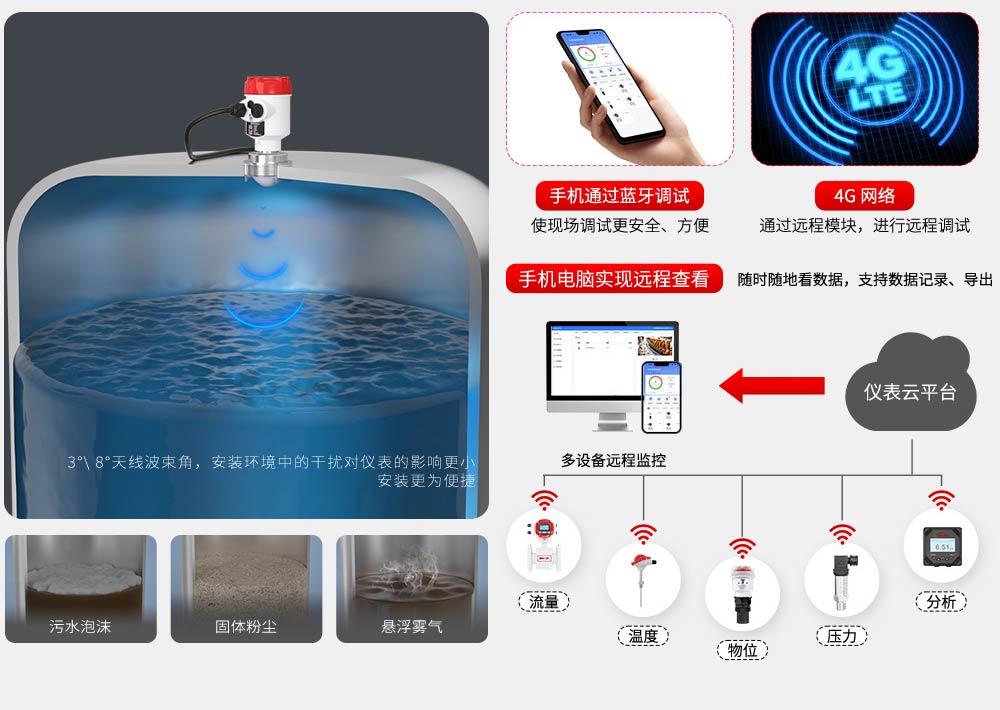 本产品波束能量低,对人体及环境均无伤害,还具有不受介质比重的影响、不受介电常数变化的影响、不需要现场校调等优点,广泛应用江河、水库、湖泊、灌渠、河道等自然水域水文监测场合。
