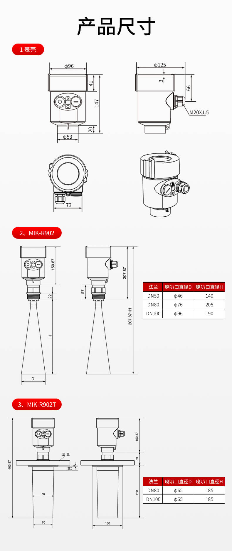 MIK-RD908/909雷达液位计天线发射极窄的微波脉冲