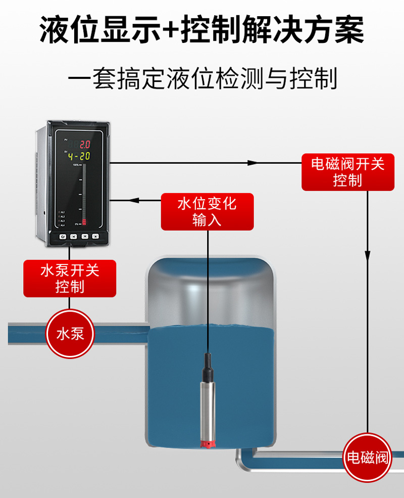 本产品精度高、体积小, 直接投入液体中,即可测量出变送器末端到液面的液体 高度,使用方便。适用于石油、化工、 电厂、城市供水、 水文勘探领域的液位测量与控制。